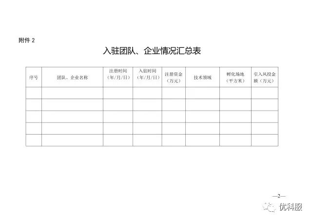 5.所有入驻创业团队、企业汇总表(附件2)。